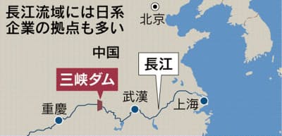 【重慶=多部田俊輔】世界最大級の三峡ダムが2006年に完成してから最大規模の洪水が長江の上流で起きている。四川省などで続いた大雨で重慶市中心部の一部道路などが水没し、長江を使った物流は一時停止に追い込まれた。重慶市からみて下流に位置する三峡ダムの水位は過去最高を更新する見通しで、当局は警戒を強める。