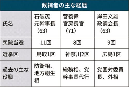 自民党総裁選 告示 石破・菅・岸田氏が立候補 - 日本経済新聞
