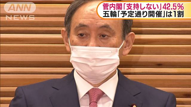 調査はこの週末に行われました。菅内閣の支持率は34.8%で12月の前回の調査から3.6ポイント下がりました。一方で、「支持しない」とした人は2.9ポイント上がり、42.5%となりました。