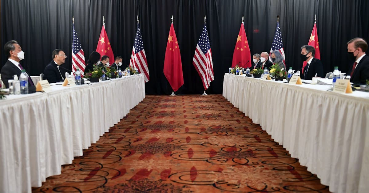 バイデン政権で米中高官による直接協議は初めてで、中国の王毅(ワン・イー)国務委員兼外相も同席した。